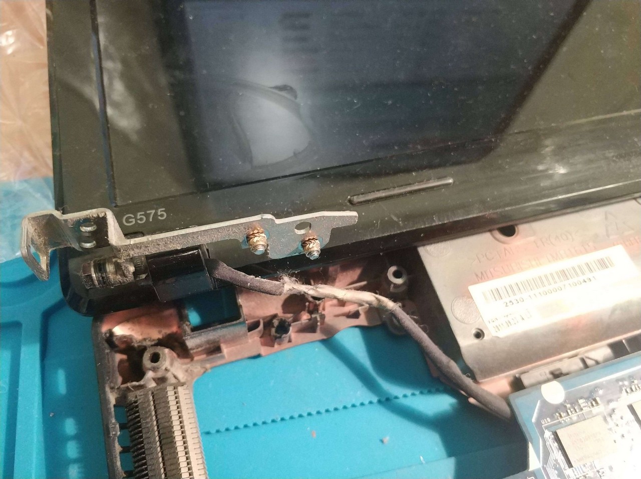 Також було виявлено зламані 4 кріплення піддона і два болтика були не від того ноутбука.