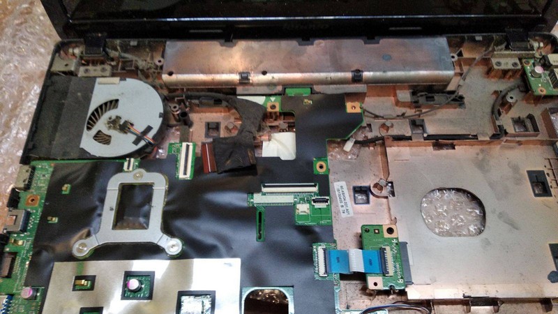 Ноутбук Lenovo Carbon 1 PC5CPB було залито кавою, після чого пробували вмикати - він деякий час попрацював і перестав. Після того як розібрали, виявили корозію на материнці. Відмили в ультаразвуковій ванні, але ряд елементів, які відповідають за живлення, довелося замінити. Відмили корозію на шлейфі матриці та замінили термопасту.